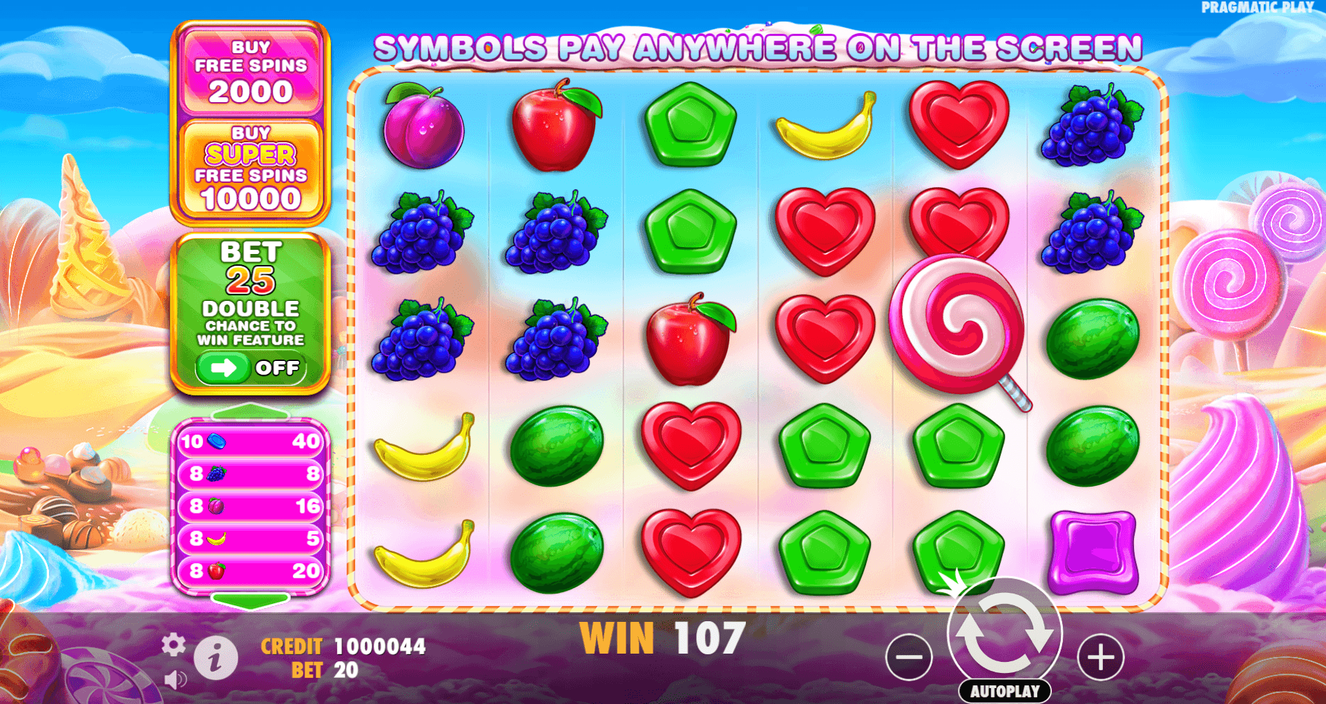 Sweet Bonanza 1000 dazzles with its candy-shop theme, featuring bright, eye-catching symbols like fruits, lollipops, and colorful candies, all set against a whimsical candy floss sky. The design is playful and immersive, with smooth animations, joyful sound effects, and a lighthearted soundtrack that keeps the mood sweet and engaging. Every spin feels like a treat, making it easy to get lost in the sugary world crafted by Pragmatic Play.